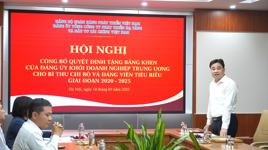 Tại Hội nghị, đồng chí Nguyễn Gia Thế đã gửi lời chúc mừng đến các Bí thư chi bộ và đảng viên của Đảng ủy VIDIFI, những người đã đạt nhiều thành tích xuất sắc trong công tác, được Đảng ủy VIDIFI và Đảng ủy NHPT ghi nhận, báo cáo lên Đảng ủy Khối Doanh nghiệp Trung ương. Hai đồng chí được khen thưởng lần này nằm trong danh sách 95 đảng viên tiêu biểu thuộc 35 đảng bộ trực thuộc Đảng ủy Khối Doanh nghiệp Trung ương, được vinh danh nhân dịp kỷ niệm 95 năm Ngày thành lập Đảng Cộng sản Việt Nam (1930-2025).