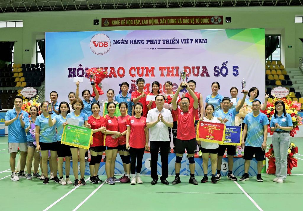Đồng chí cũng biểu dương những thành tích mà các đơn vị Cụm thi đua số 5 đã đạt được trong thời gian qua. Thông qua Hội thao được tổ chức lần này, Ban Lãnh đạo ngân hàng mong muốn các nội dung thi đấu sẽ góp phần nâng cao đời sống tinh thần, động viên đoàn viên, người lao động trong hệ thống nói chung và Cụm thi đua số 5 nói riêng tích cực rèn luyện sức khỏe, hăng hái, nỗ lực thi đua hoàn thành xuất sắc nhiệm vụ được giao; đồng thời cũng là nơi để tuyên truyền vận động CBNV, NLĐ hoàn thiện quy tắc văn hóa ứng xử, nhận diện thương hiệu Ngân hàng Phát triển trong thời kỳ mới.