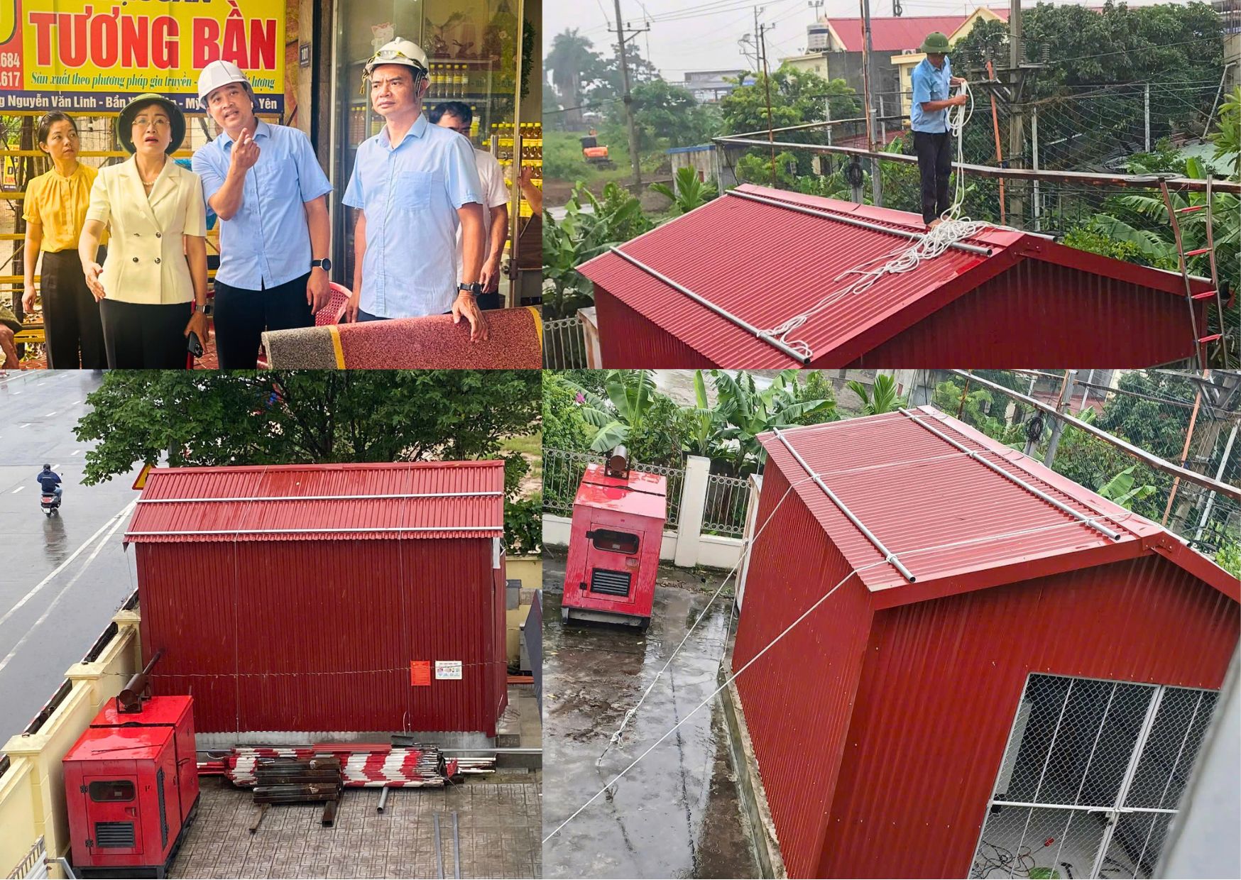 Gia cố chằng néo mái tôn nhà chứa máy phát điện.