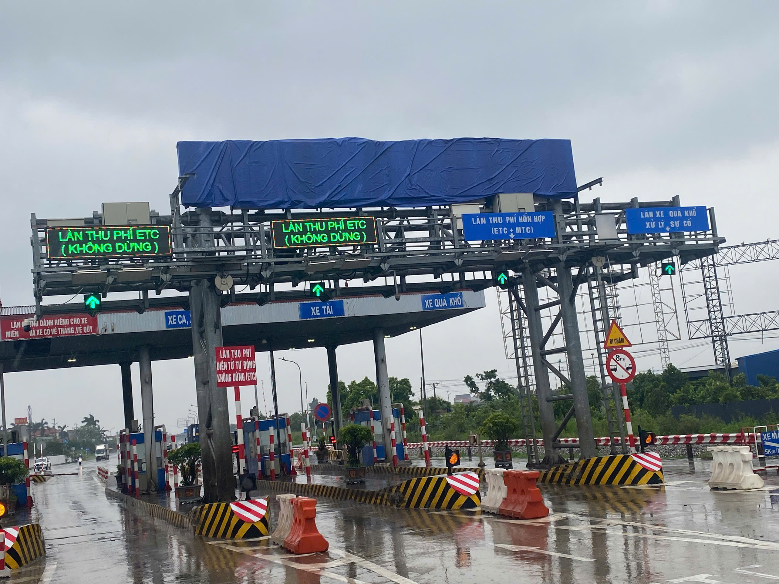 Bọc bạt bảo vệ bảng LED tránh gió lớn tại trạm thu phí QL5