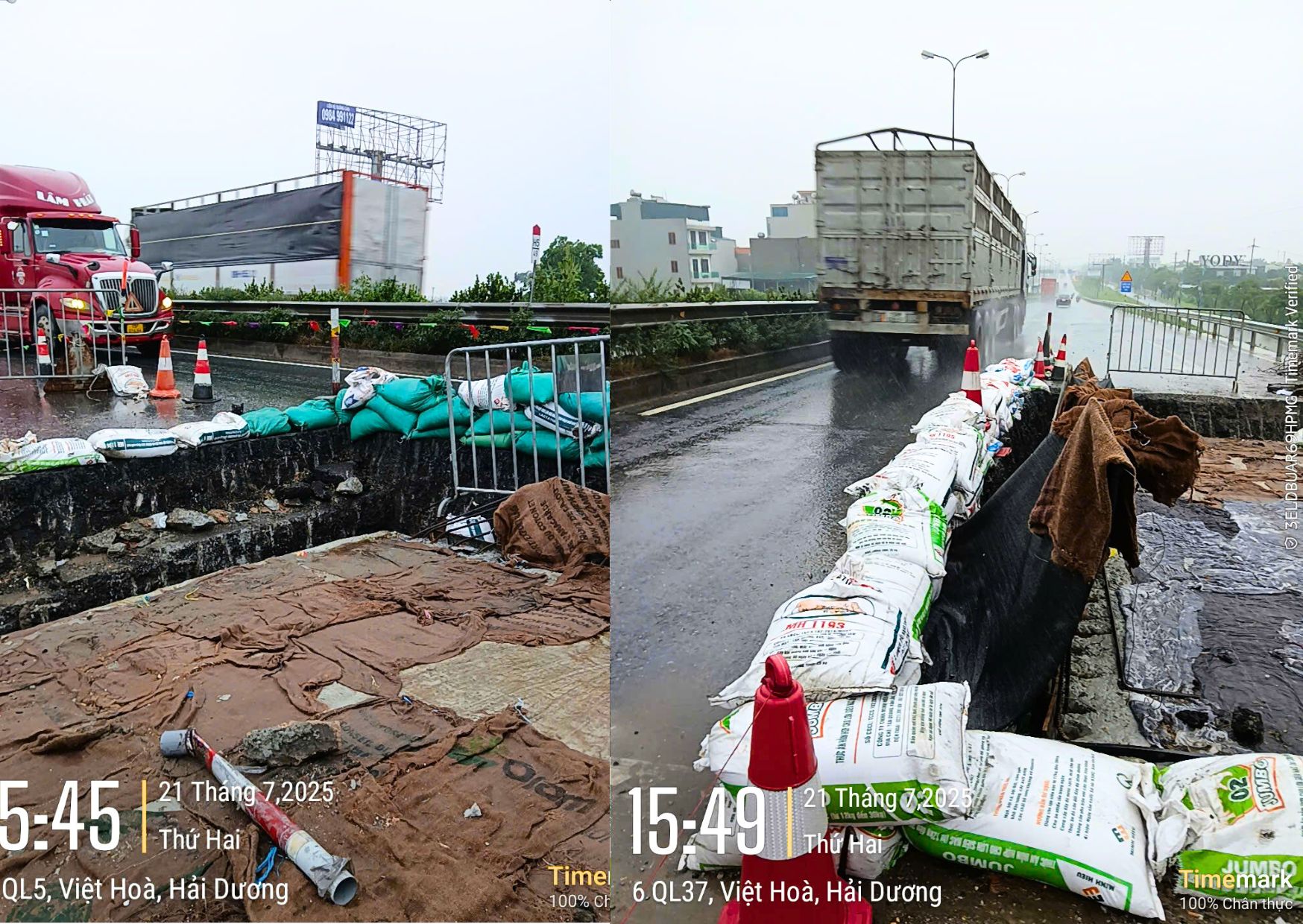 Tại đoạn Km11+135-Km45, hai cây lớn có nguy cơ đổ đã được cắt tỉa trước 14h ngày 21/7/2025, các rãnh thoát nước tại Mỹ Hào và Hải Dương được khơi thông, hệ thống an toàn giao thông tại cầu Đồng Niên được gia cố bằng bao tải cát. Phó Tổng Giám đốc đã chỉ đạo giảm thiểu nước chảy vào hố thi công và bố trí lực lượng trực 24/24 tại các khu vực trọng điểm. Các đoạn tuyến có nguy cơ ngập lụt như Km55+800-Km56+600 được chuẩn bị thiết bị cảnh báo và phương án phân luồng. Tại các trạm thu phí, bảng LED được che chắn, mái nhà máy phát điện được gia cố, đảm bảo hoạt động ổn định trong bão.