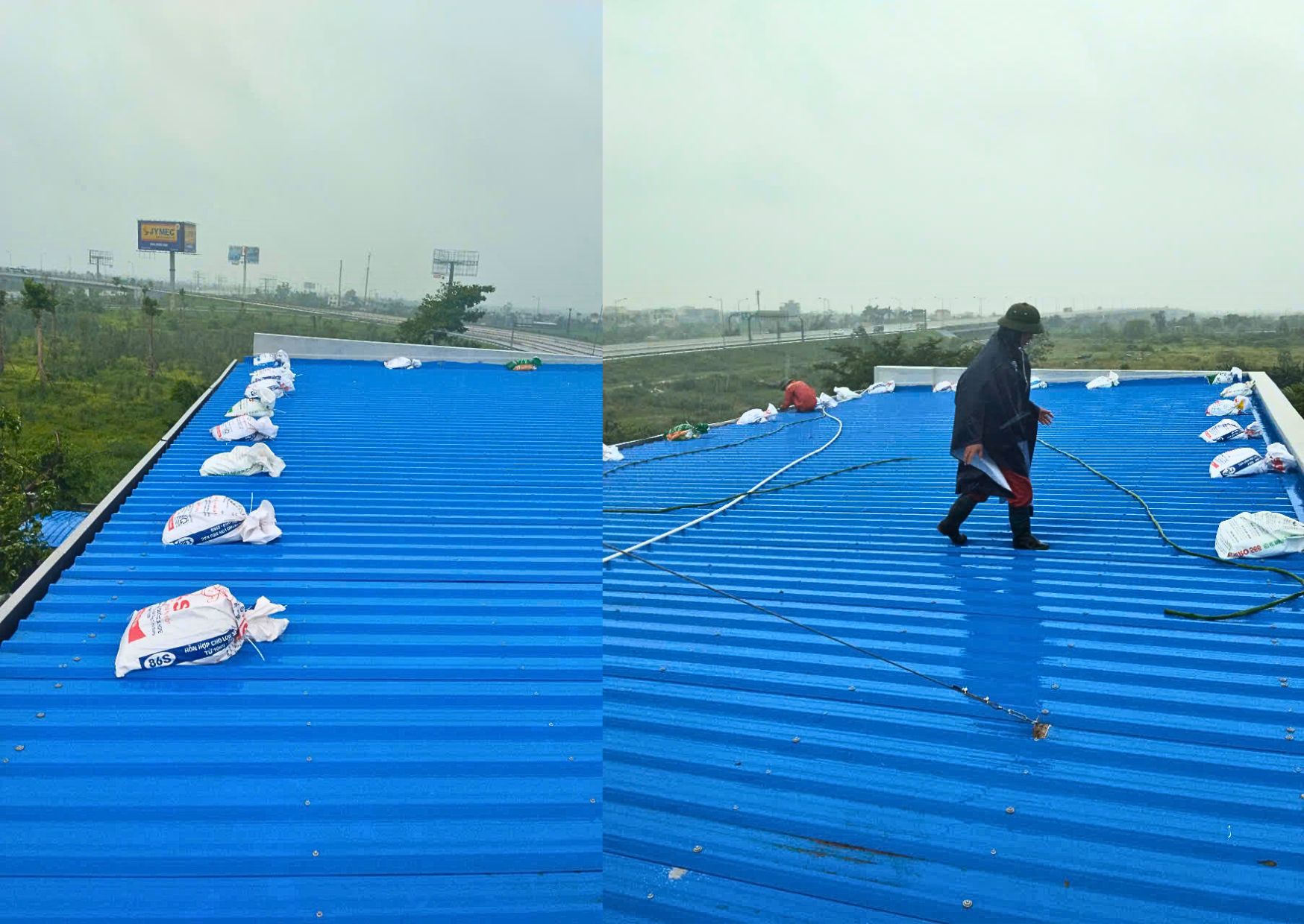 Xí nghiệp Xây dựng và Bảo trì đường bộ VIDIFI gia cố mái tôn tại trạm thu phí trên cao tốc Hà Nội - Hải Phòng