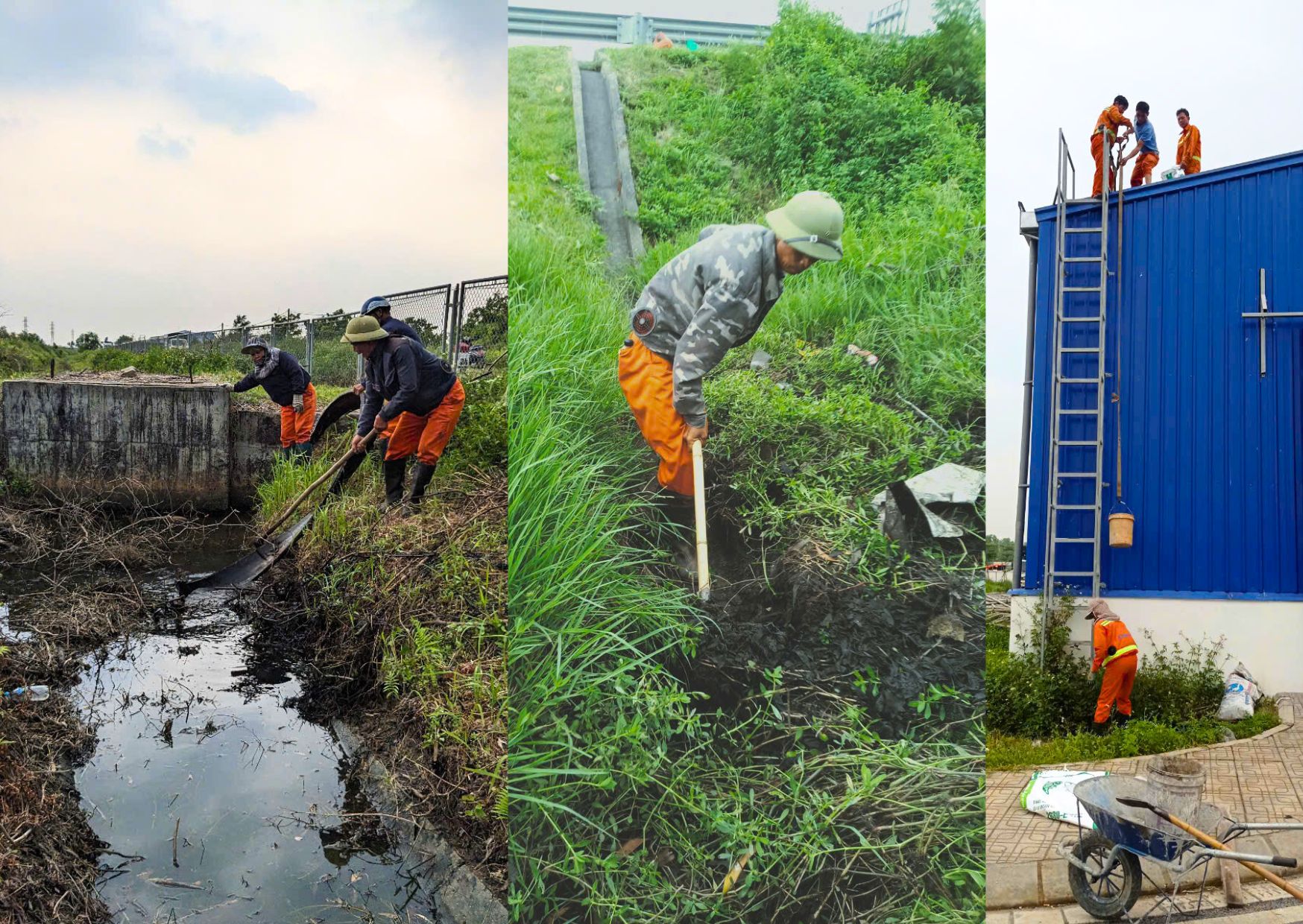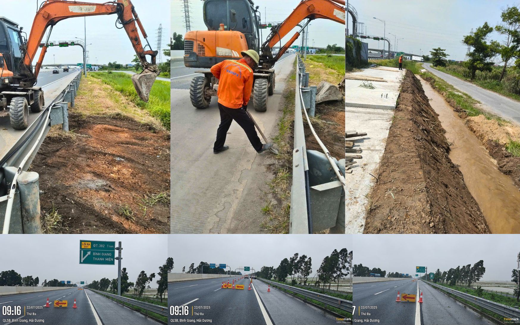 Công tác nạo vét khơi thông dòng chảy và kiểm tra các biển báo trên đường ô tô cao tốc Hà Nội - Hải Phòng