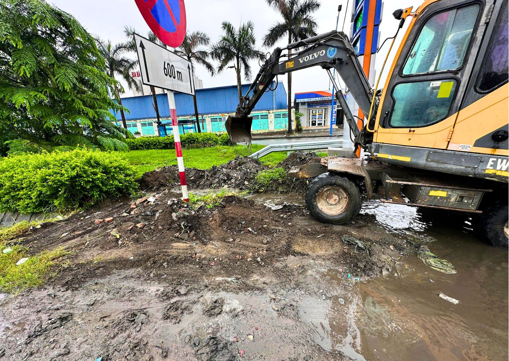 Tại các nơi đang thi công đã được triển khai đắp bao cát, biển cảnh báo và rào chắn xung quanh hố để đảm bảo ATGT và hạn chế nước chảy vào