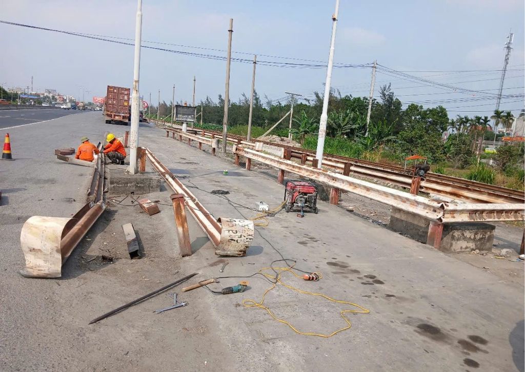 Lắp đặt các hộ lan tôn sóng mới đảm bảo ATGT