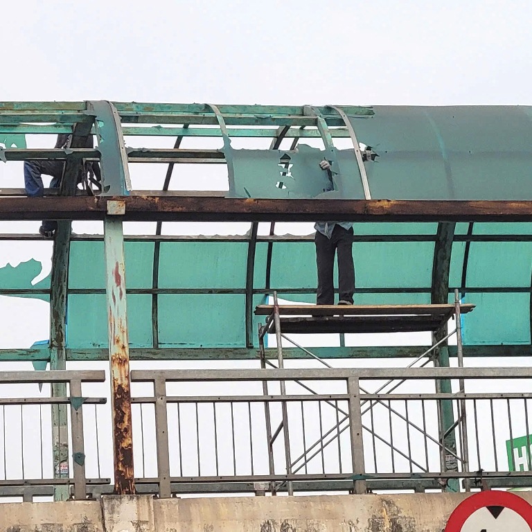 Tháo dỡ mái vòm cầu vượt bộ hành.