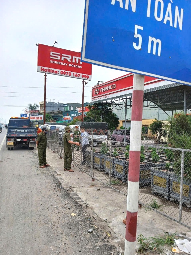 Giải toả lấn chiếm hành lang an toàn đường bộ.