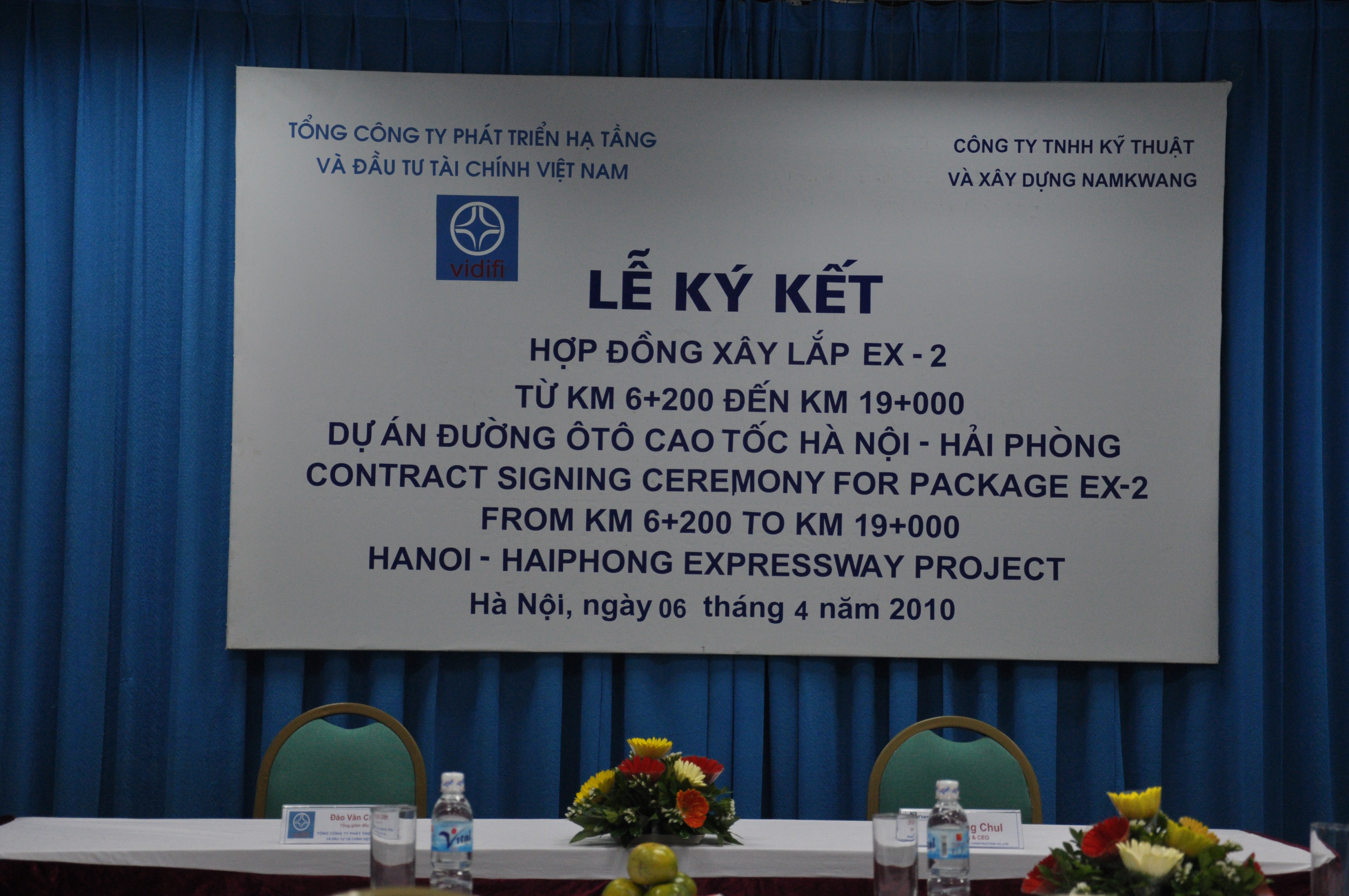 Ngày 29/12/2010, Tổng công ty Phát triển hạ tầng và Đầu tư tài chính Việt Nam (VIDIFI) và Công ty TNHH Tập đoàn cầu đường Sơn Đông đã tổ chức lễ ký gói thầu xây lắp EX-8 thuộc Dự án đường ô tô cao tốc Hà Nội - Hải Phòng.