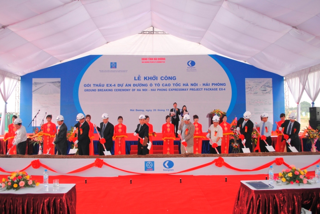 Ngày 26-11, tại Thôn Sồi Tó, xã Thái Học, huyện Bình Giang, tỉnh Hải Dương, UBND tỉnh Hải Dương đã phối hợp với Tổng công ty Phát triển hạ tầng và Đầu tư tài chính Việt Nam (VIDIFI) - Chủ đầu tư và nhà thầu quốc tế Công ty TNHH Keangnam (Hàn Quốc) đã tổ chức khởi công gói thầu EX - 4 thuộc dự án đường ô tô cao tốc Hà Nội - Hải Phòng.