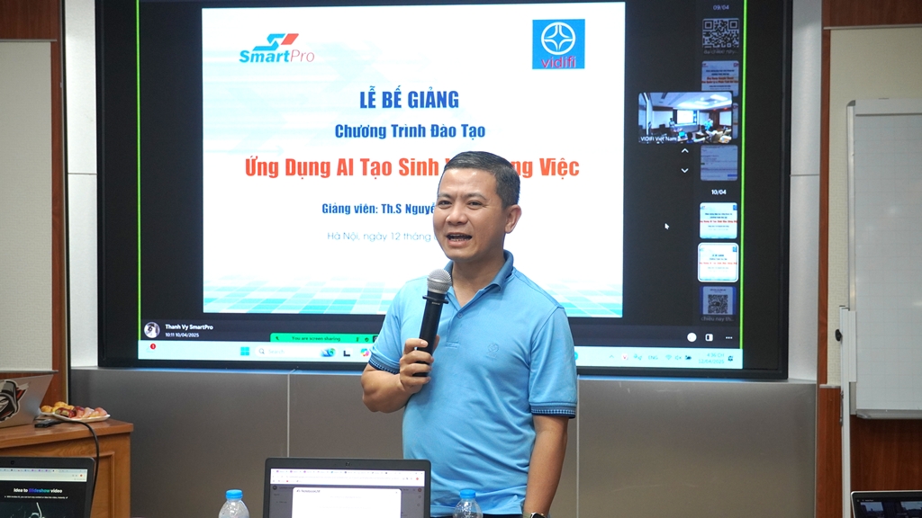 Kết thúc chương trình học, Tổng Giám đốc - Trần Anh Tú gửi lời chúc mừng sự nhiệt tình và nỗ lực của các học viên đồng thời khẳng định “Việc tổ chức lớp học hôm nay là bước đầu tiên trong tiến trình cập nhật công nghệ mới. Tôi mong rằng các học viên sẽ áp dụng ngay kiến thức vào công việc thực tiễn, góp phần xây dựng một môi trường làm việc hiện đại, hiệu quả và sáng tạo hơn”. VIDIFI sẽ tiếp tục tổ chức các khóa học công nghệ tiên tiến nhằm nâng cao năng lực đội ngũ nhân sự, đồng thời đưa AI trở thành một phần không thể thiếu trong chiến lược phát triển của Tổng Công ty. Tổng Giám đốc nhấn mạnh.