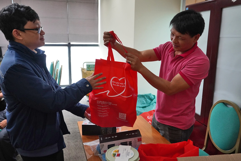 Những phần quà nhỏ được trao gửi đến các tình nguyện viên sau khi hiến máu