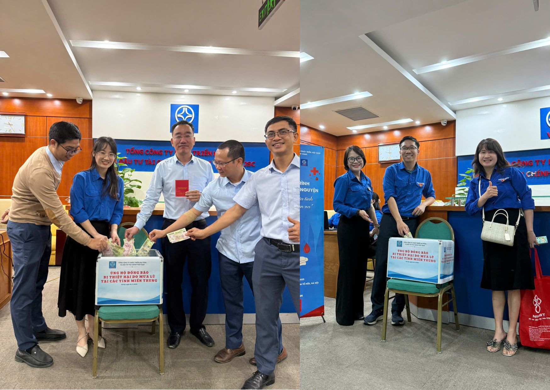 Các tình nguyện viên và CBNV tham gia ủng hộ đồng bào bị thiệt hại do mưa lũ tại các tỉnh miền Trung