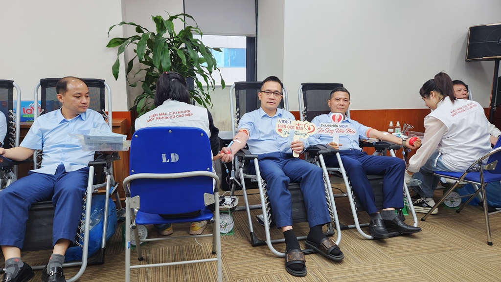 Chương trình Hiến máu tình nguyện năm 2025 với chủ đề ý nghĩa “Giọt máu nghĩa tình – Tình người lan xa” đã diễn ra thành công tốt đẹp bởi sự phối hợp chặt chẽ của Đoàn thanh niên VIDIFI và Đoàn thanh niên VDB.